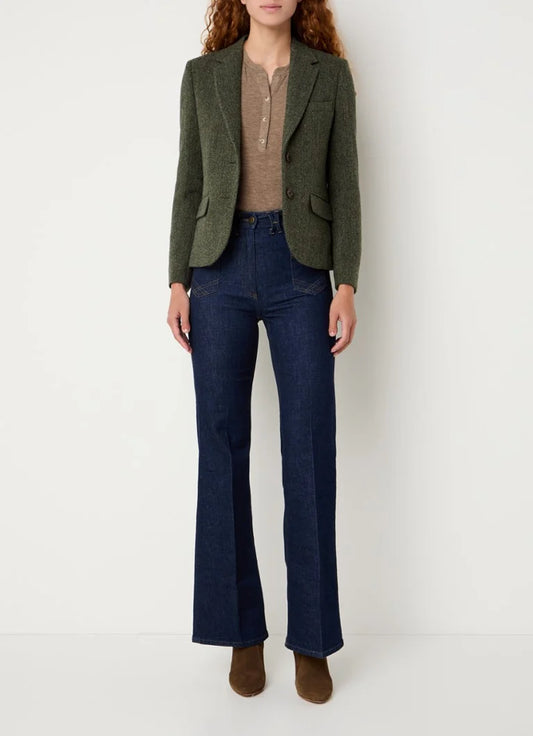 Blazer Femme En Laine Vierge | Motif Chevrons | Doublé Coton | Élégant Et Authentique Pour l’Hiver