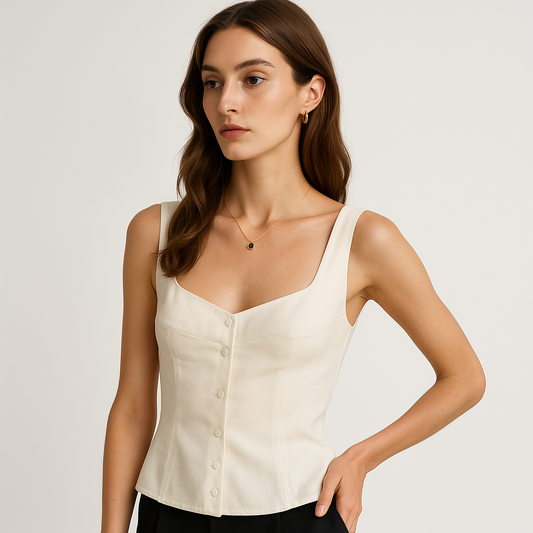 Top Sans Manches Structuré | Fermeture Bijou | Encolure V et Fente Bas
