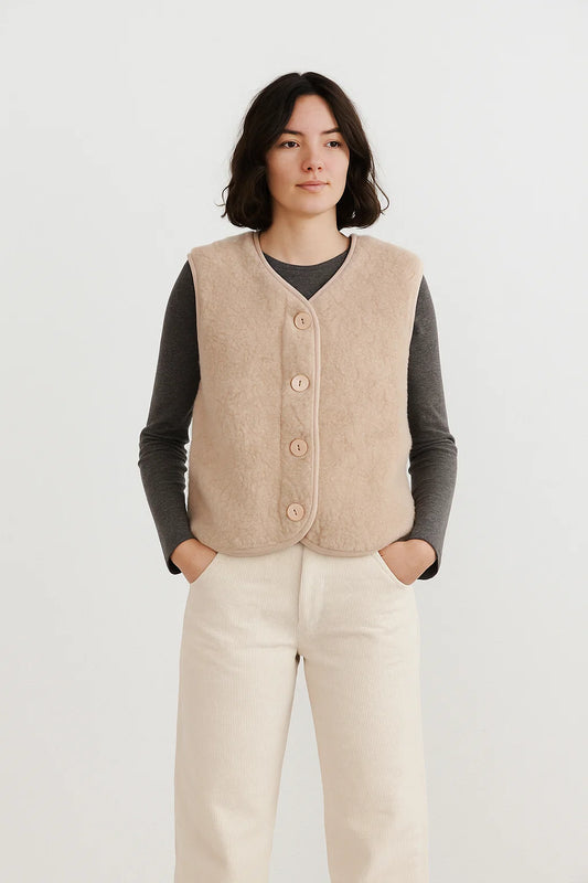 Gilet Sans Manches Effet Laine Bouclée | Polyester | Style Rétro Décontracté | Parfait Pour La Mi-Saison