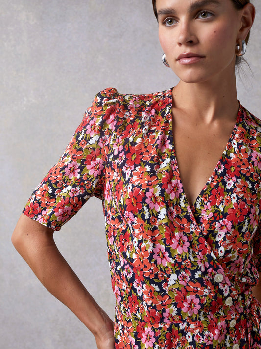Robe Midi Boutonnée A Fleurs | Romantique & Fluide | Printemps & Quotidien | Tissu Léger