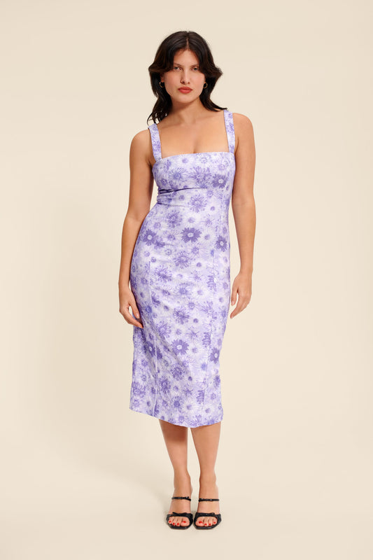 Robe Midi Fleurie Lilas | Romantique & Ajustée | Été & Moments Doux | Coton Stretch