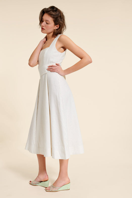 Robe Midi A Encolure Carrée | Élégante & Intemporelle | Été & Occasions Chic | Coton Texturé