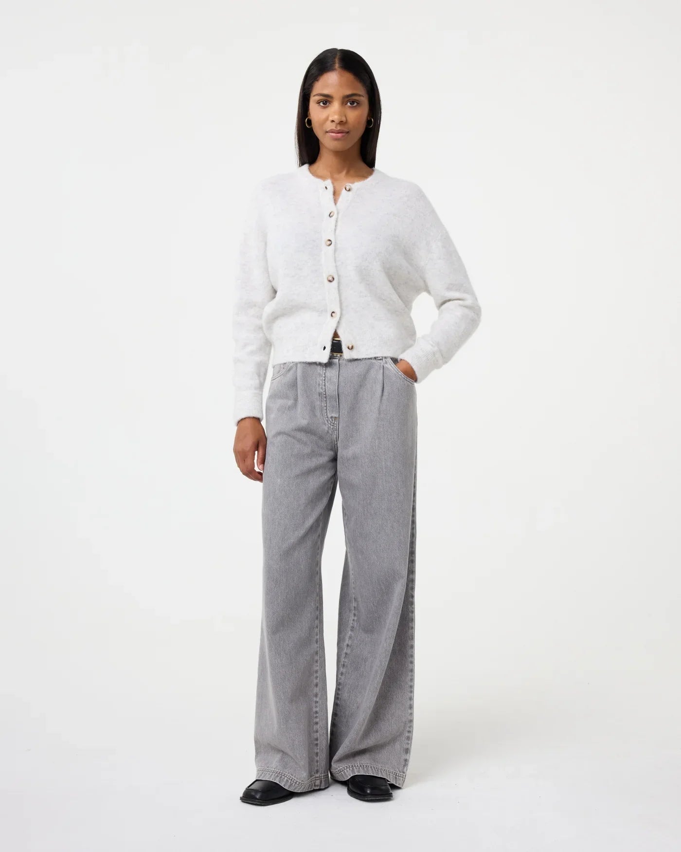 Ce cardigan à la texture brossée est une caresse sur la peau, conçu pour celles qui aiment les coupes décontractées et les matières ultra douces. Facile à associer, il deviendra vite un essentiel de votre garde-robe.