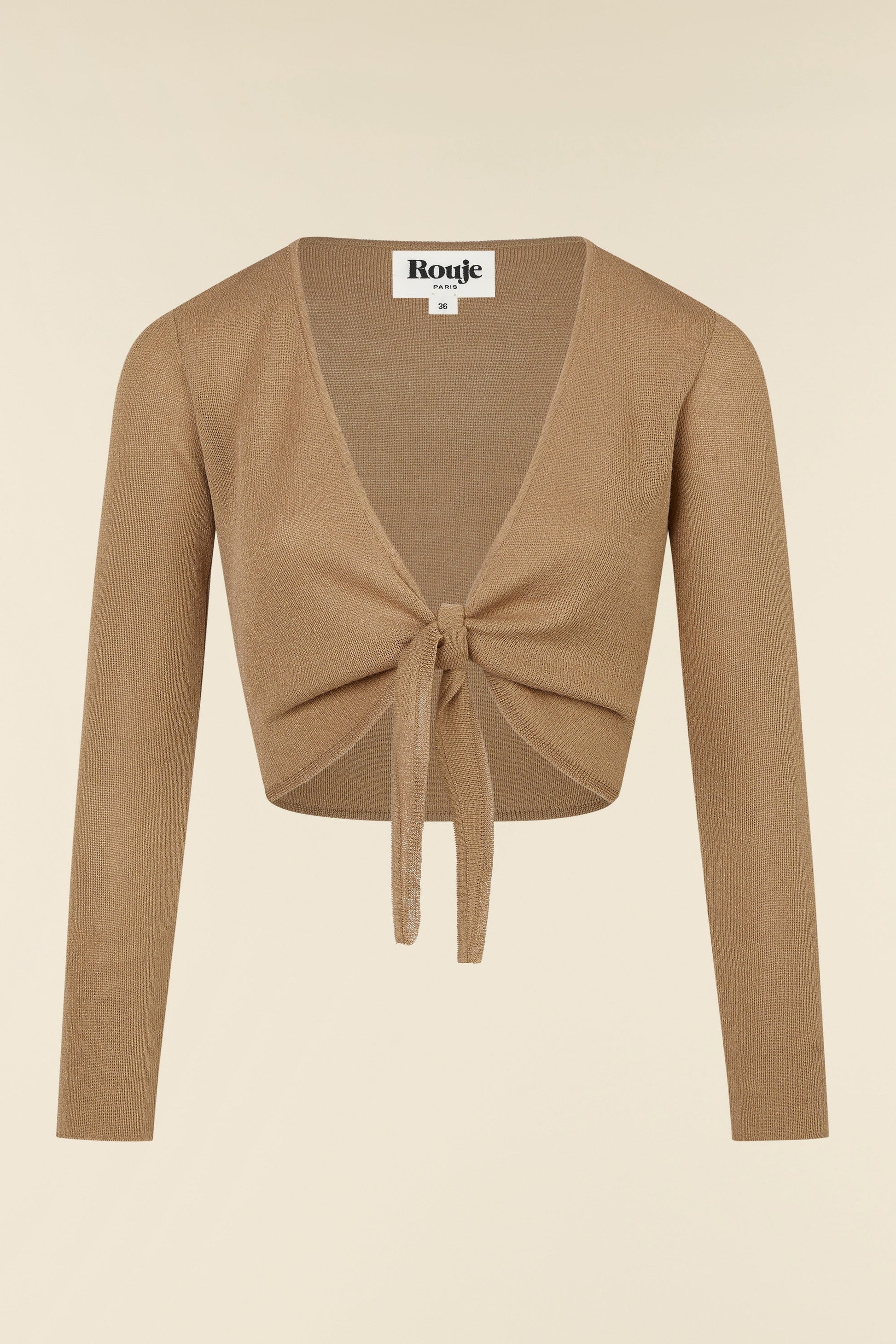 Ce gilet court kaki à nouer sur le devant apporte une touche féminine et moderne à votre silhouette. Sa coupe ajustée et sa maille douce en font un indispensable pour un style assumé.